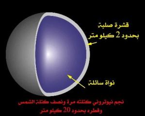 وتصور أخي القارئ أننا لو أحضرنا إبرة صغيرة جداً من هذا النجم الثاقب، فإن وزنها سيكون 200 مليون كيلو غرام، هذه الإبرة النيوترونية الثاقبة لو وضعت على الأرض لثقبتها واخترقتها بالكامل!! فكيف لو أحضرنا نجماً قطره 20 كيلو متر مثلاً؟! من هنا ندرك ضخامة وعظمة هذه النجوم وأهميتها في السماء، وأنها من الآيات التي تدل على عظمة الخالق وقدرته تبارك وتعالى.