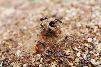 إن النمل بنّاء ماهر وذكي جداً، ففي هذا العش الذي يظهر في الصورة رفع النمل مدخل العش فوق مستوى سطح الأرض خوفاً من الأمطار والمياه، مع العلم أن العش تحت سطح التراب ولكن الذي يظهر في الصورة هو مدخل العش فقط!