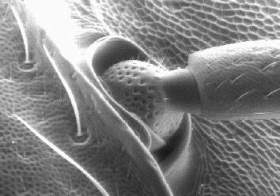 صورة لقرن الاستشعار لدى النملة (الهوائي)، وتأمل معي التعقيد والدقة في التصميم والصنع، مع العلم أن سماكة هذا الهوائي لا تتجاوز أجزاء قليلة من المئة من الميليمتر.